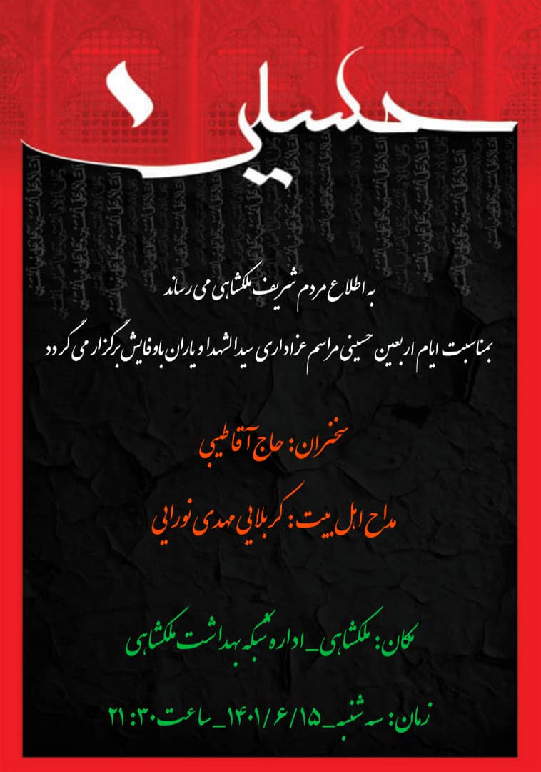 برگزاری مراسم عزاداری حضرت اباعبدالله الحسین (ع) درشبکه بهداشت ودرمان ملکشاهی